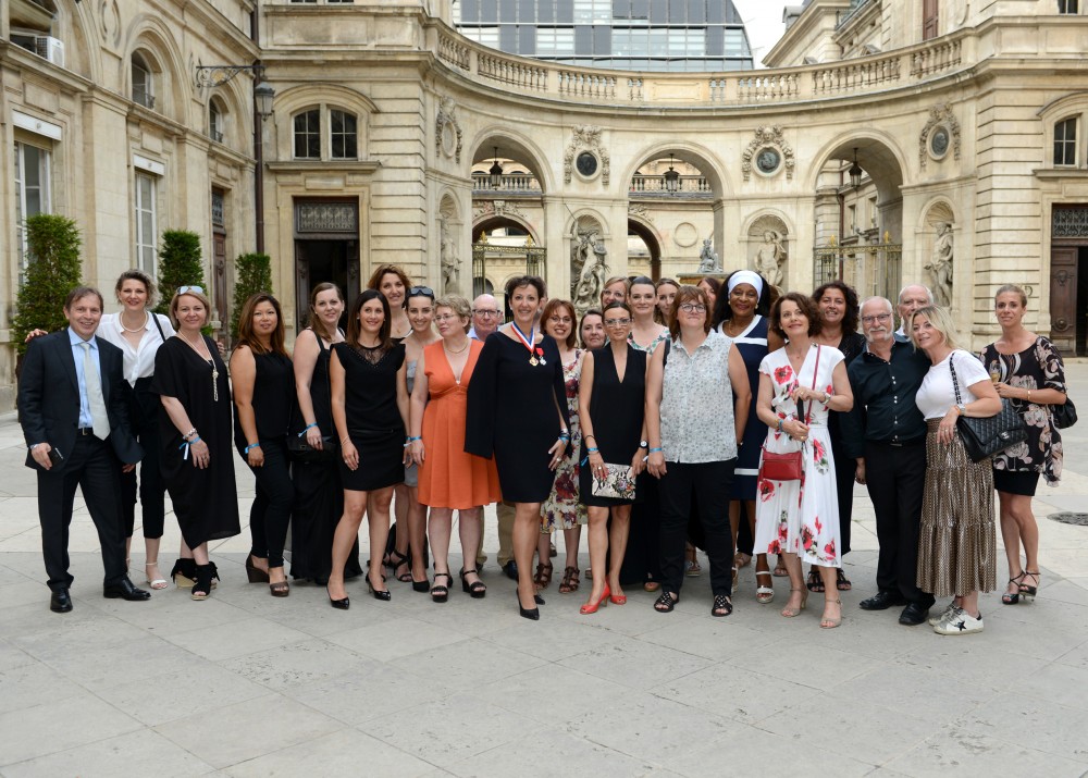 Lundi 8 Juillet 2019, à l’Hôtel de ville de Lyon notre amie Carole Peyrefitte reçoit les insignes de chevalier dans l’Ordre de la Légion d’Honneur, dans les salons de l’Hôtel de ville de Lyon, sous la présidence de Gérard Collomb, Maire de Lyon, Anne-Sophie Condemine, adjointe au Maire déléguée à l’emploie, à l’insertion et à l’égalité des chances.
